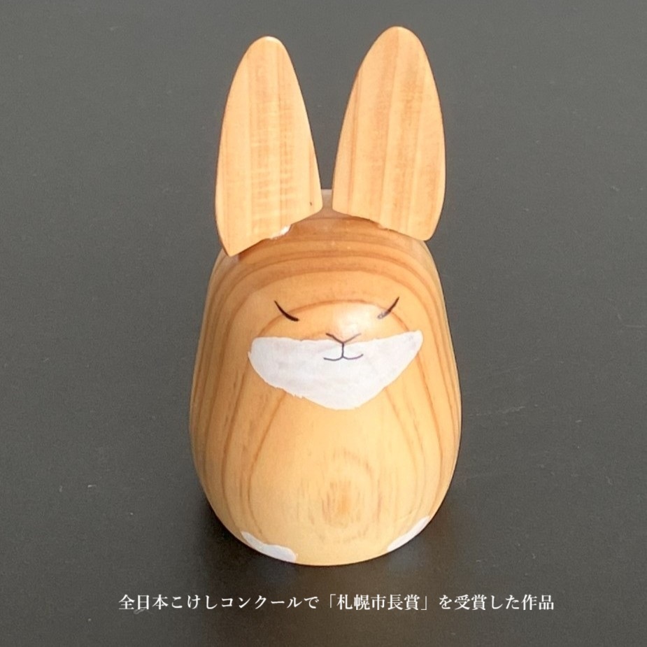 This work won the Sapporo Mayor's Award at the 67th All Japan Kokeshi Competition. The clear coating was used to create a natural, natural design that brings out the beautiful grain of the hinoki cypress.