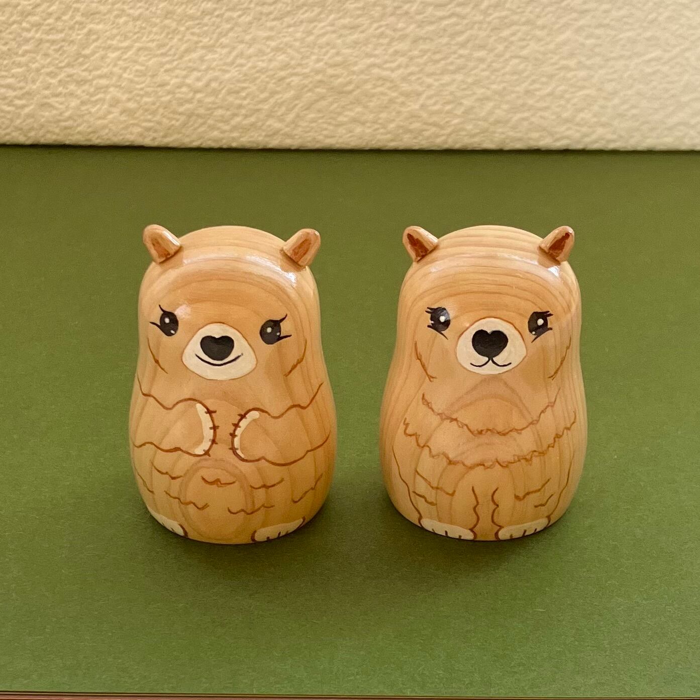 2024年12月に八木山動物園で生まれた双子ちゃんです。自分の実力がどこまであるか試してみたくなって挑んだ作品です。画像だけでは良く分からないの動物園に何度か足を運びました。さらには、その性格を動物園から教えてもらうことで描き分けることができました。性格はオスがわんぱくでメスは慎重だとか。オスは「うみ」メスは「そら」。ホッキョクグマのしっぽは、どこにあるのか見つけるのが難しいほどの小さなしっぽです。それを名前の頭文字をくずし文字で表現しました。誕生を祝い、健やかな成長を願い、そしてお礼として八木山動物園に寄贈したこけしのレプリカです。